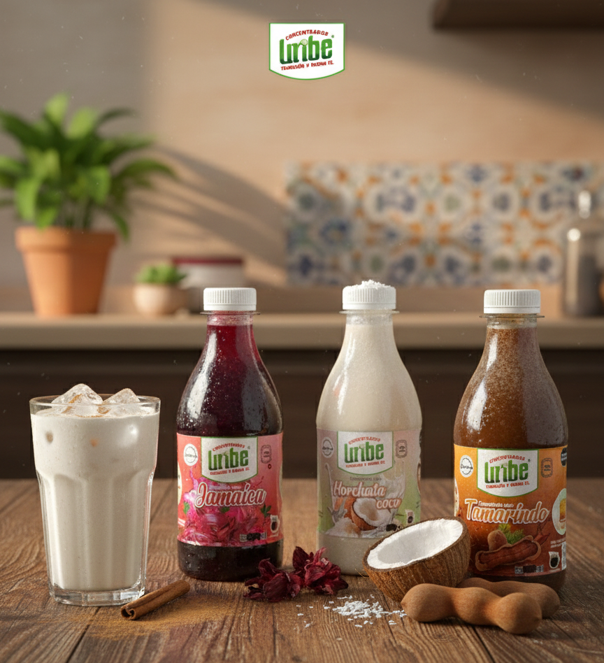 Horchata de arroz, horchata de coco, Jamaica y tamarindo.